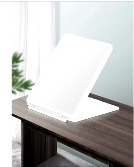 El Espejo A-M21 es mucho más que un simple reflejo. Cuenta con un sistema de iluminación LED perimetral ajustable y un diseño elegante con soporte tipo peana que incluye una práctica base organizadora. Su superficie de alta definición y su ángulo ajustable te permiten captar cada detalle, mientras que su funcionamiento mediante batería recargable o conexión USB te da libertad total de movimiento.