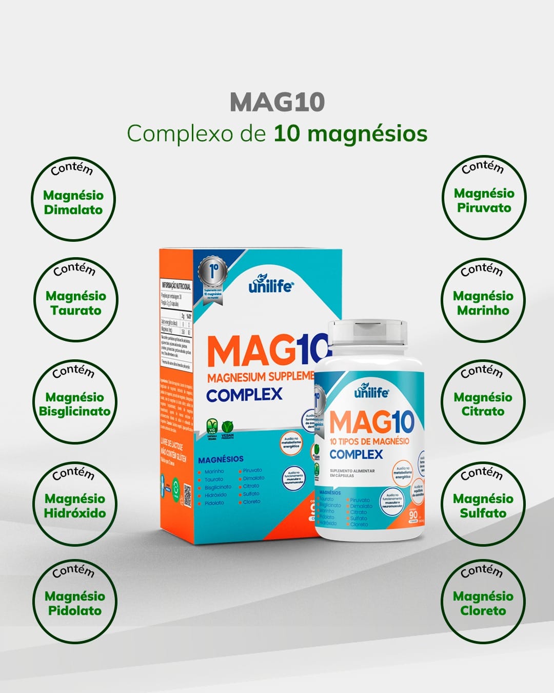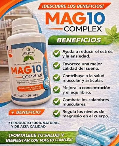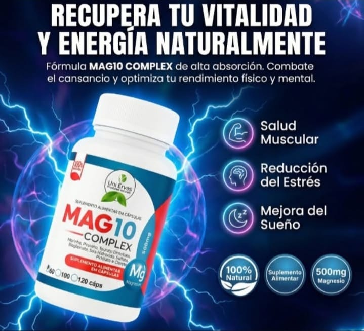 Mag10 Complex. comercializado como una mezcla de 10 tipos diferentes de magnesio en cápsulas.